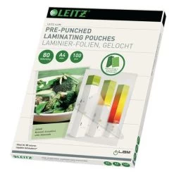 Pochettes Plastification à Chaud, A4, 80 Microns, Pré-perforéess Leitz